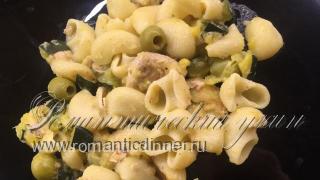 Паста с консервированным лососем и оливками