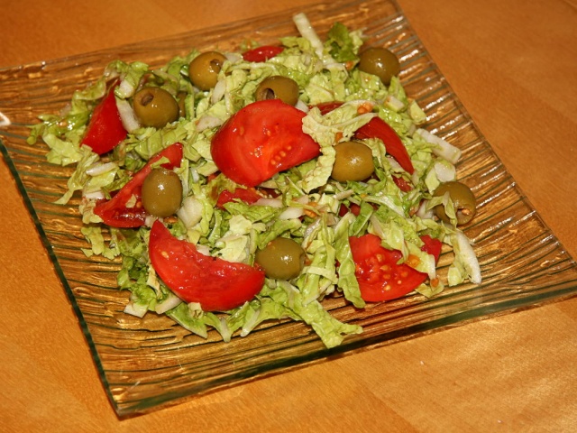 Пекинский салат с помидорами и оливками