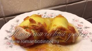 Роллы из кабачков с мягким сыром в томатном соусе