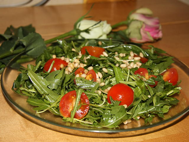 Салат из рукколы и помидоров черри