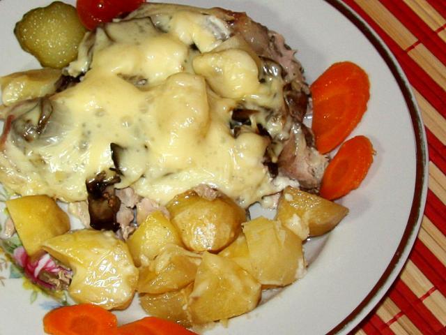 Свинина с шампиньонами под сырной корочкой