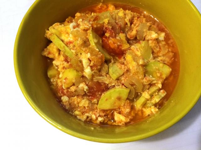 Яичница-болтунья с овощами